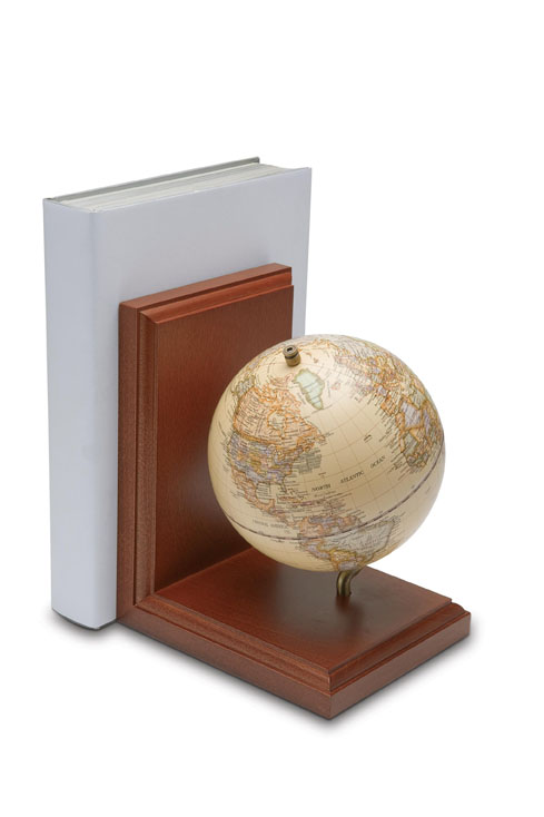 Book holder sub forma de glob pamantesc asezat pe un stativ din lemn. Dimensiuni: 125x165x160 mm.