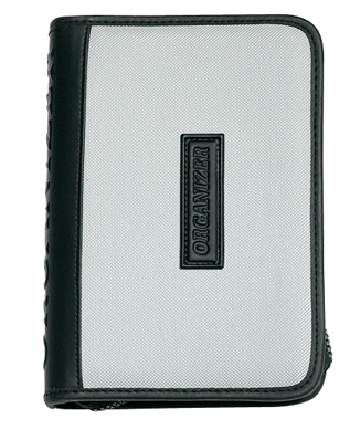 Organizer A7, cu fermoar, calendar 2 pagini/saptamana. Material: PU. Culoare: negru/argintiu. Dimensiuni: 18x13x3 cm.