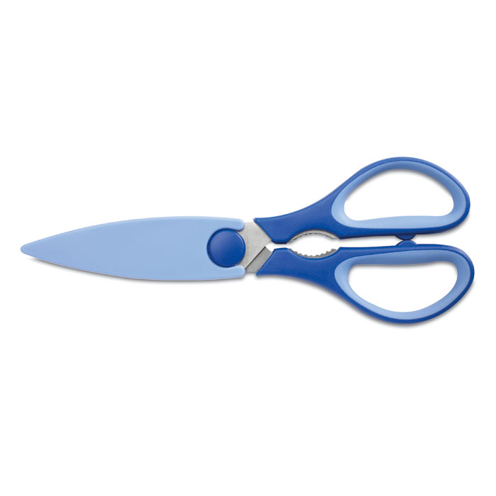 Foarfeca cu magnet. Culori: albastru, portocaliu. Dimensiuni: 22x8.5x1 cm. Logo: 40x12 mm.