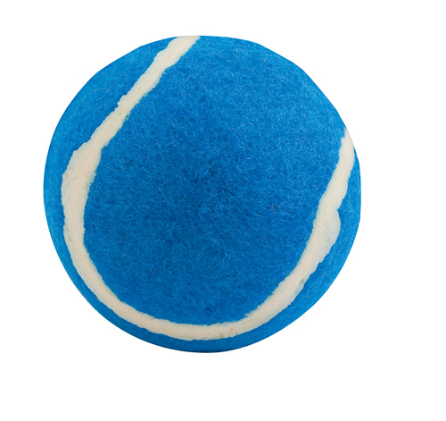 Minge pentru caini sub forma de mingie de tenis. Diametru: 6.4 cm. Culori: portocaliu, rosu, albastru.