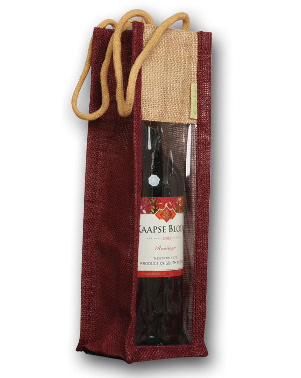 Sacosa ecologica pentru o sticla cu vin, cu manere din bumbac. Dimensiuni: 36x10x10 cm.